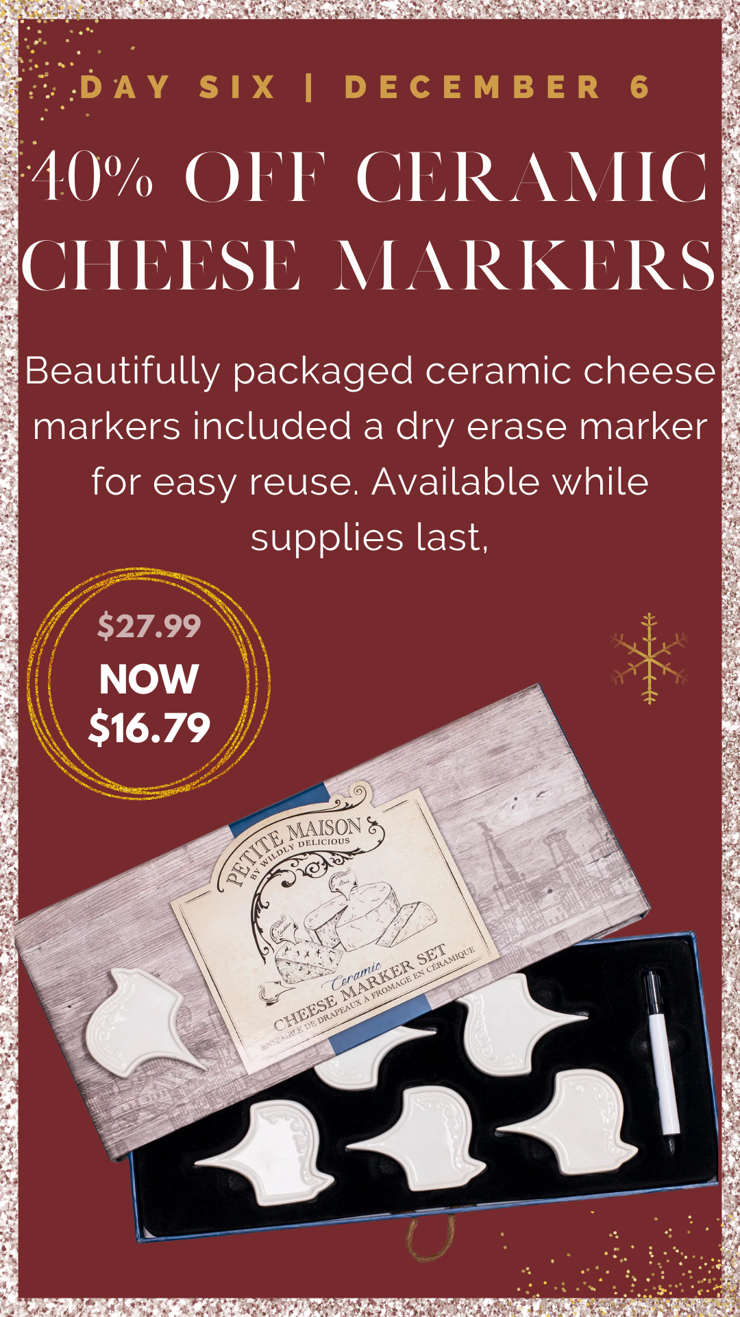 12 Days of Christmas - Day 6. 40% off set of ceramic cheesemarkers. Makes a great gift!