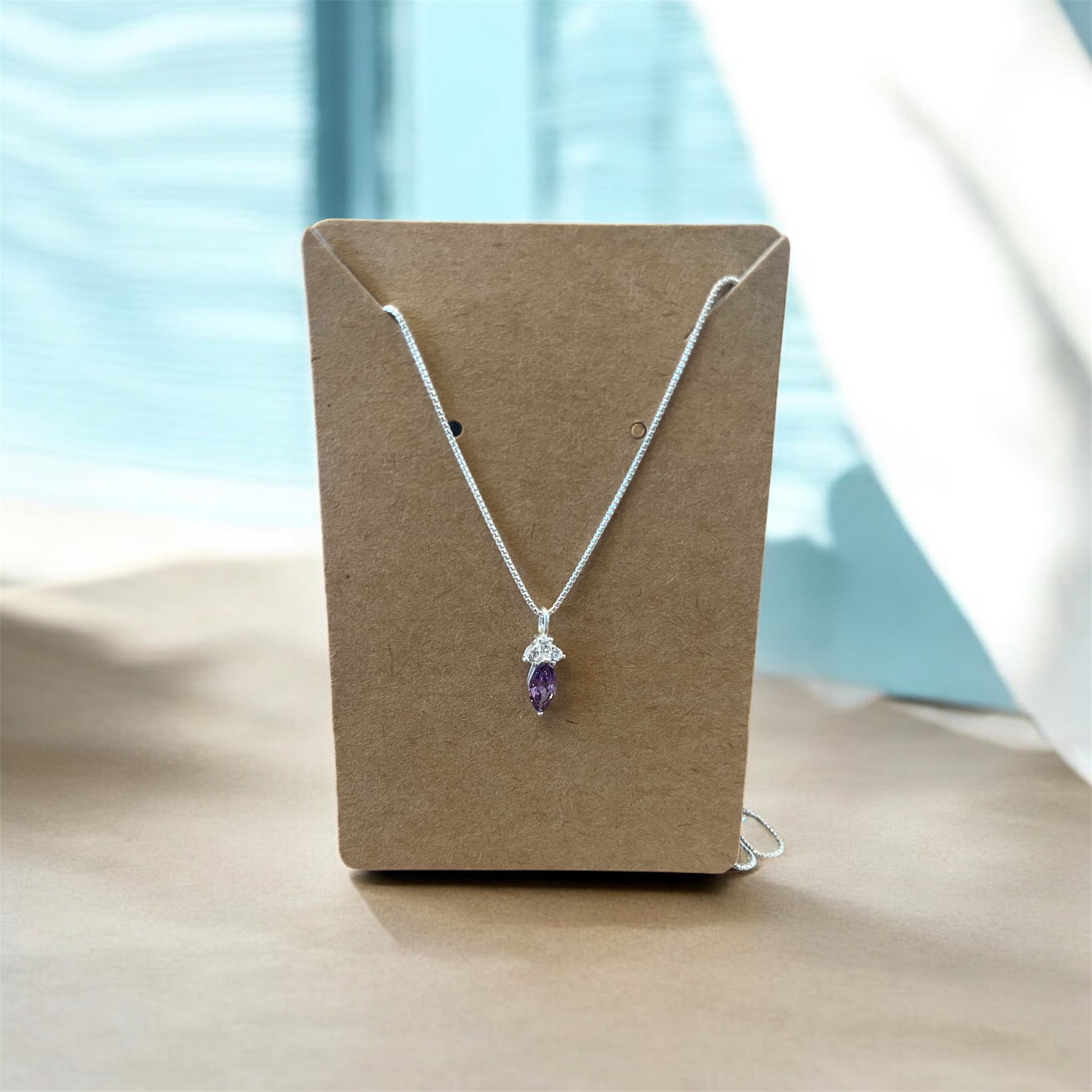 Beautiful sterling silver amethyst necklace by Shelley MacDonald Jewellery. This elegant pendant features a genuine amethyst stone, showcasing the gemstone's rich purple hue and natural beauty.