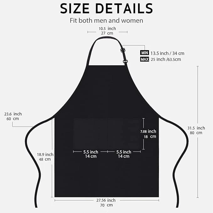 Add a touch of humor and practicality to your kitchen with our premium cooking aprons! Each apron is crafted from high-quality, wear-resistant polyester, making it waterproof and durable enough to withstand the rigors of daily kitchen work. Designed for both men and women, these aprons feature a comfortable adjustable neck strap and a perfect size of 31.5" x 27.5" with a 23.6" back strap for easy tying.