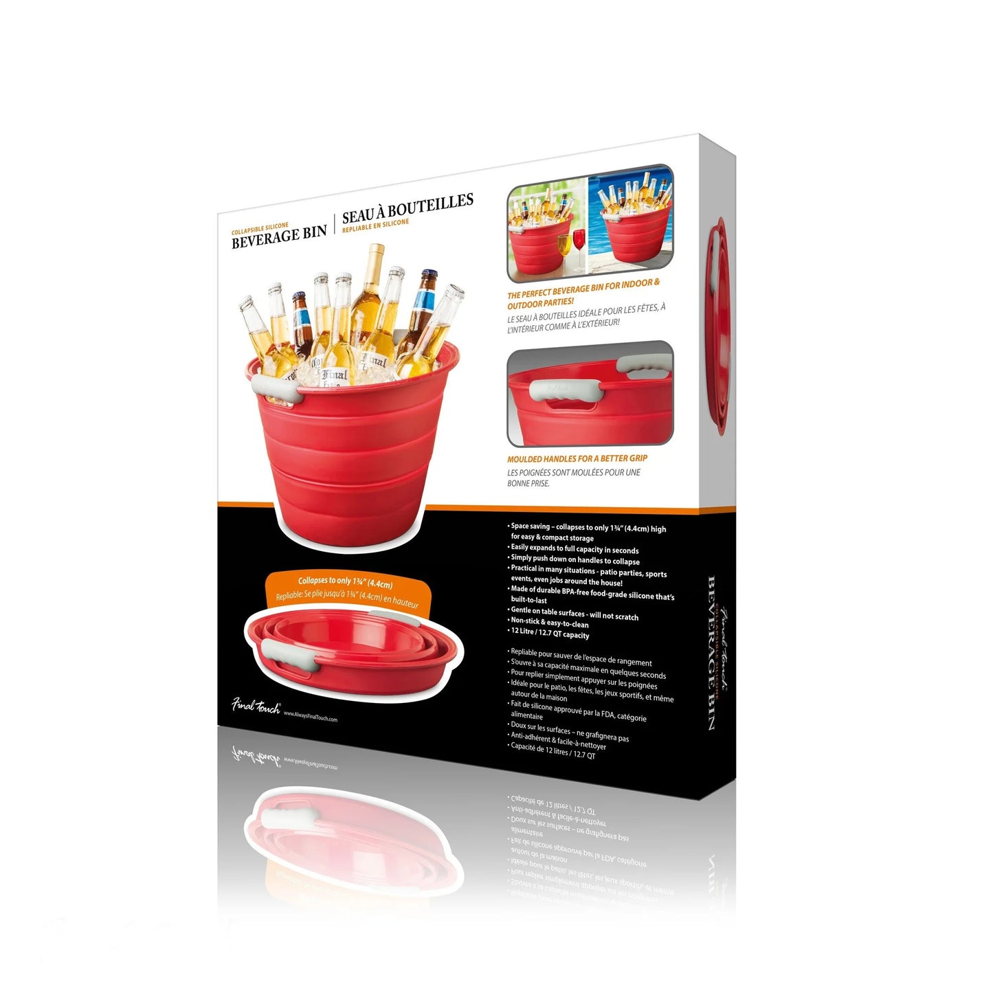 The perfect beverage bin for indoor & outdoor parties or even the beach! This silicone beverage bin collapses to only 1.75" (4.4cm) high with a gentle push down for easy & compact storage. Just fill with ice, your favourite beverages and you’re ready to party!