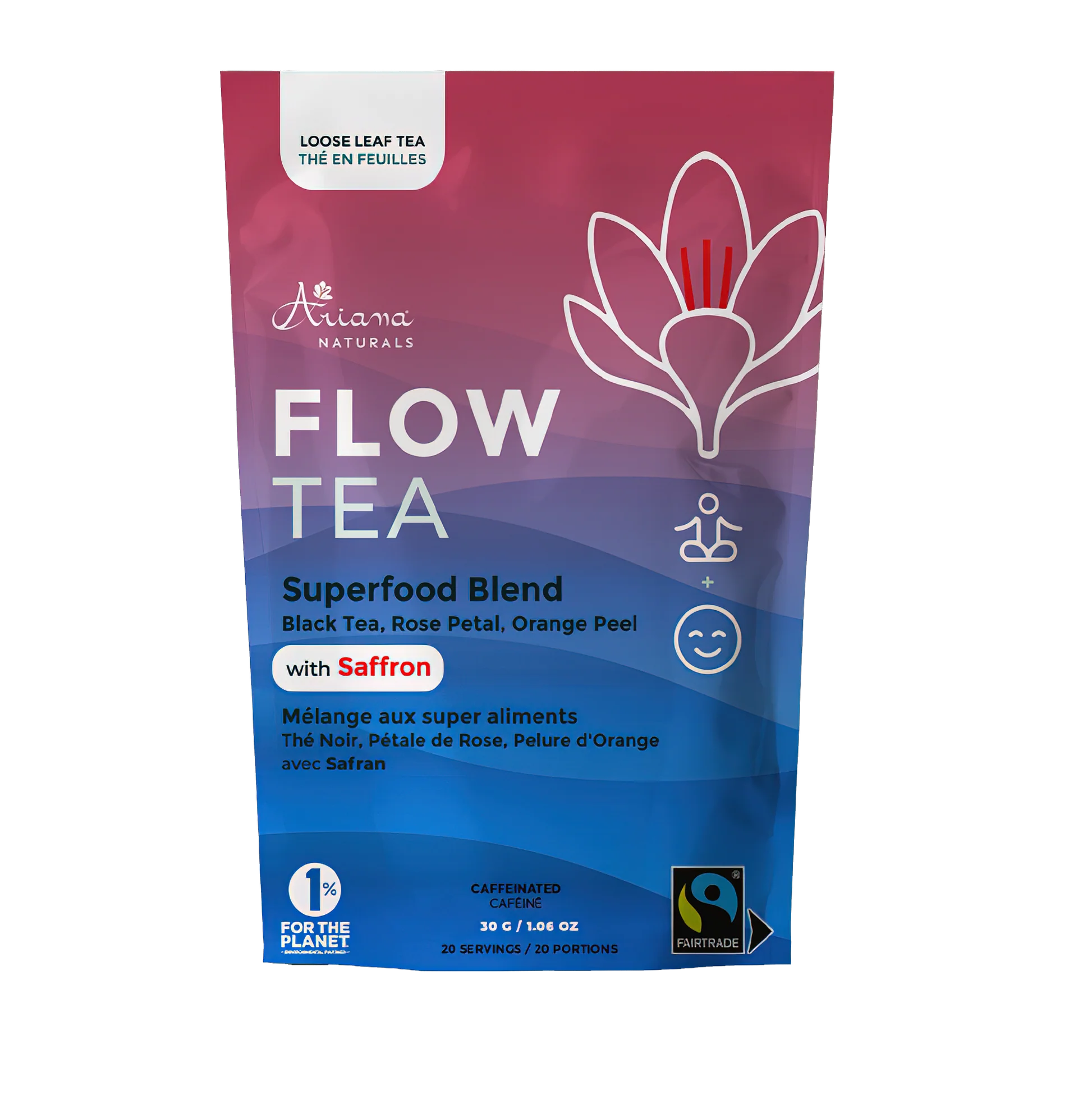 Embrace your mental flow with this unique combination of Black tea, Rose Petal, Orange Peel, and Negin Saffron loose-leaf tea.