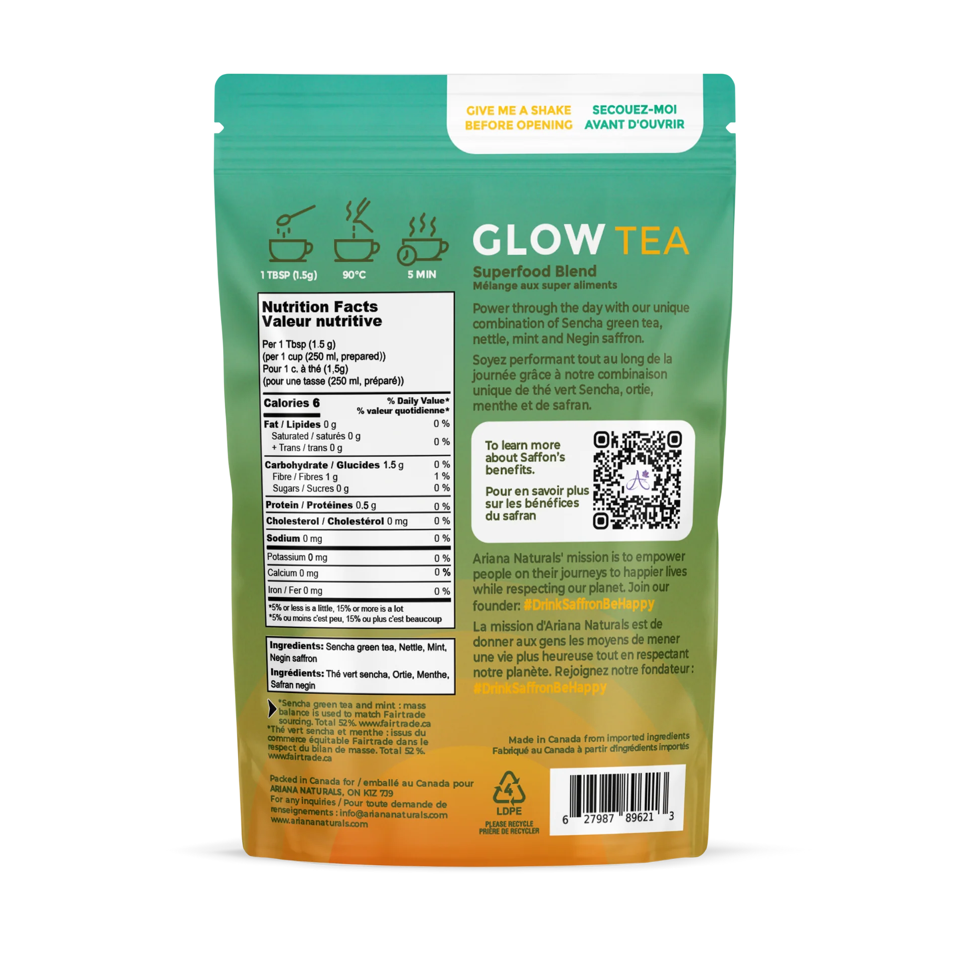 Functionality: With L-theanine from the Sencha Green, antioxidants from the Nettle, digestive aid from the mint, and mood-boosting properties from the Negin Saffron, this is your ideal tea for feeling more energetic and enhancing your mood!