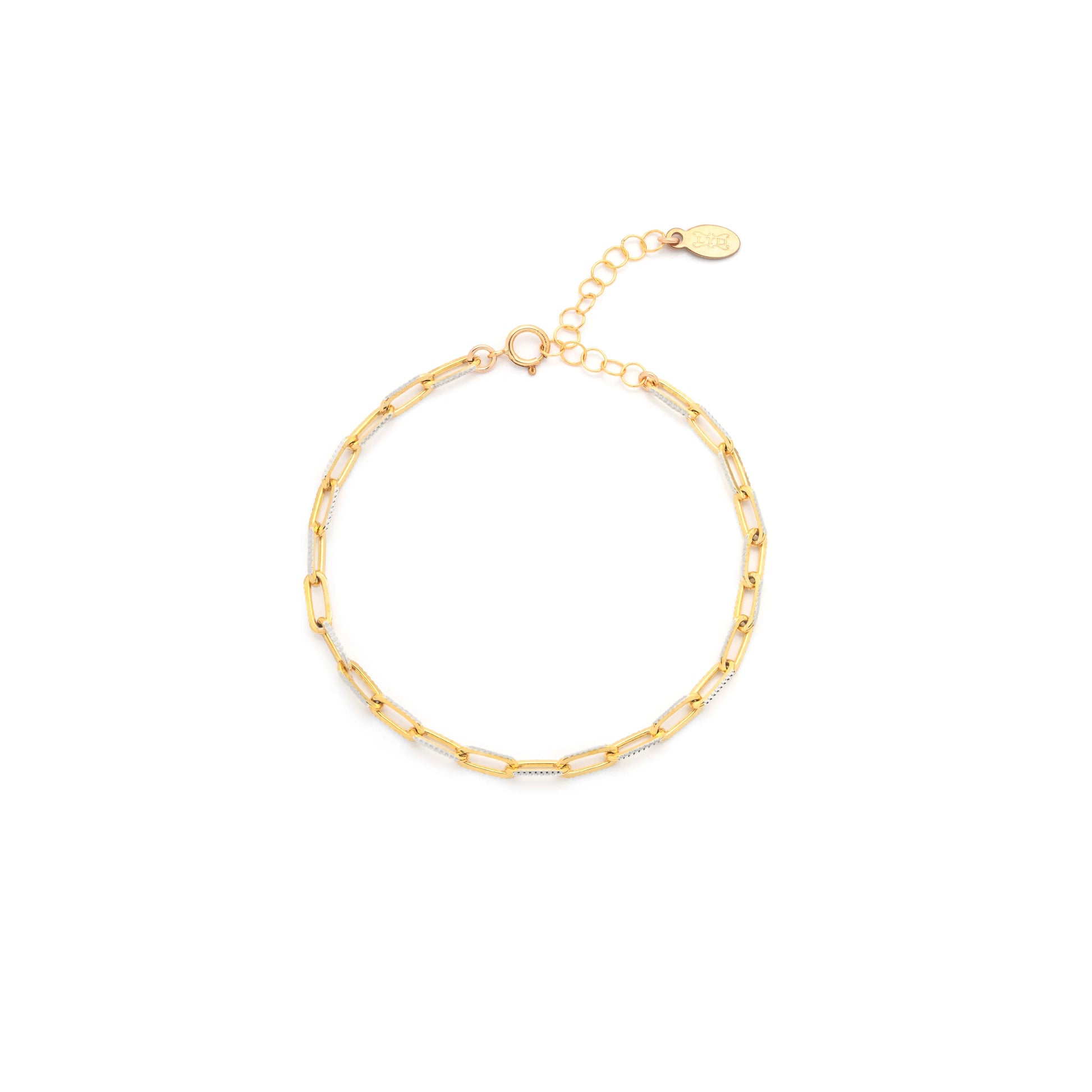 This bracelet is made with 14 Karat Gold plated Sterling Silver chain links with a gold-filled clasp and extender. Adjustable 6.75"–8", it’s your perfect everyday bracelet with a twist.