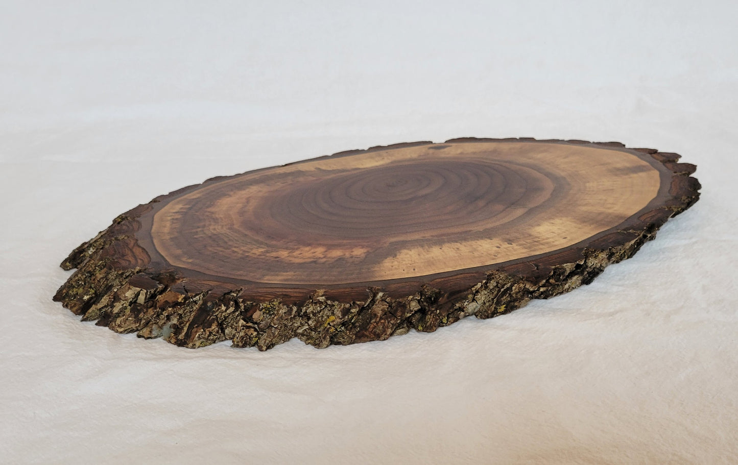 Beautiful grain with thick live edge bark. Handcrafted in Ottawa