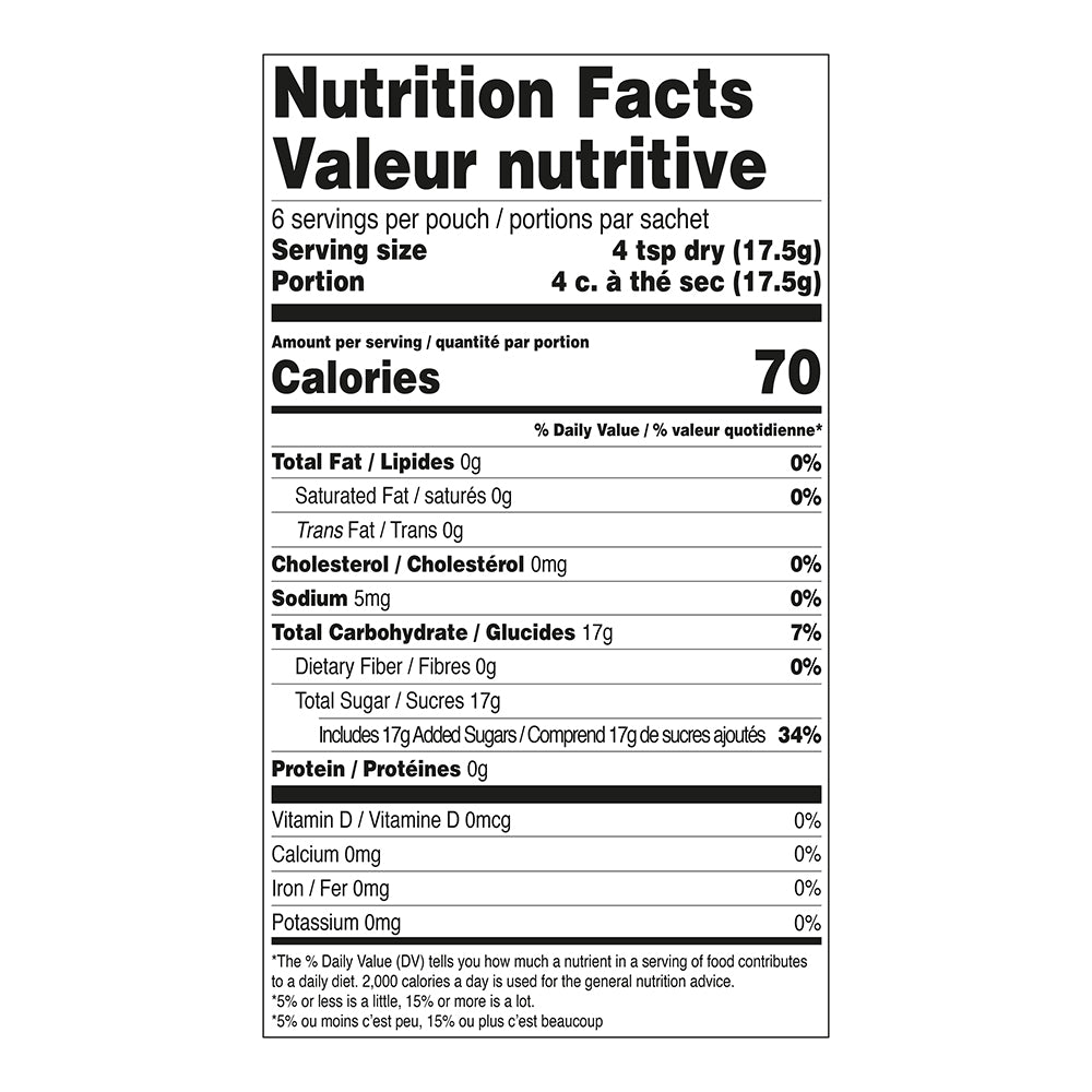 Combine 17.5 g (4 tsp) of Sangria Mix with 150 ml (5 oz) of chilled wine and stir until mix is dissolved. Add 60 ml (2 oz) of chilled soda water. Serve over ice with a fruit garnish of your choice.