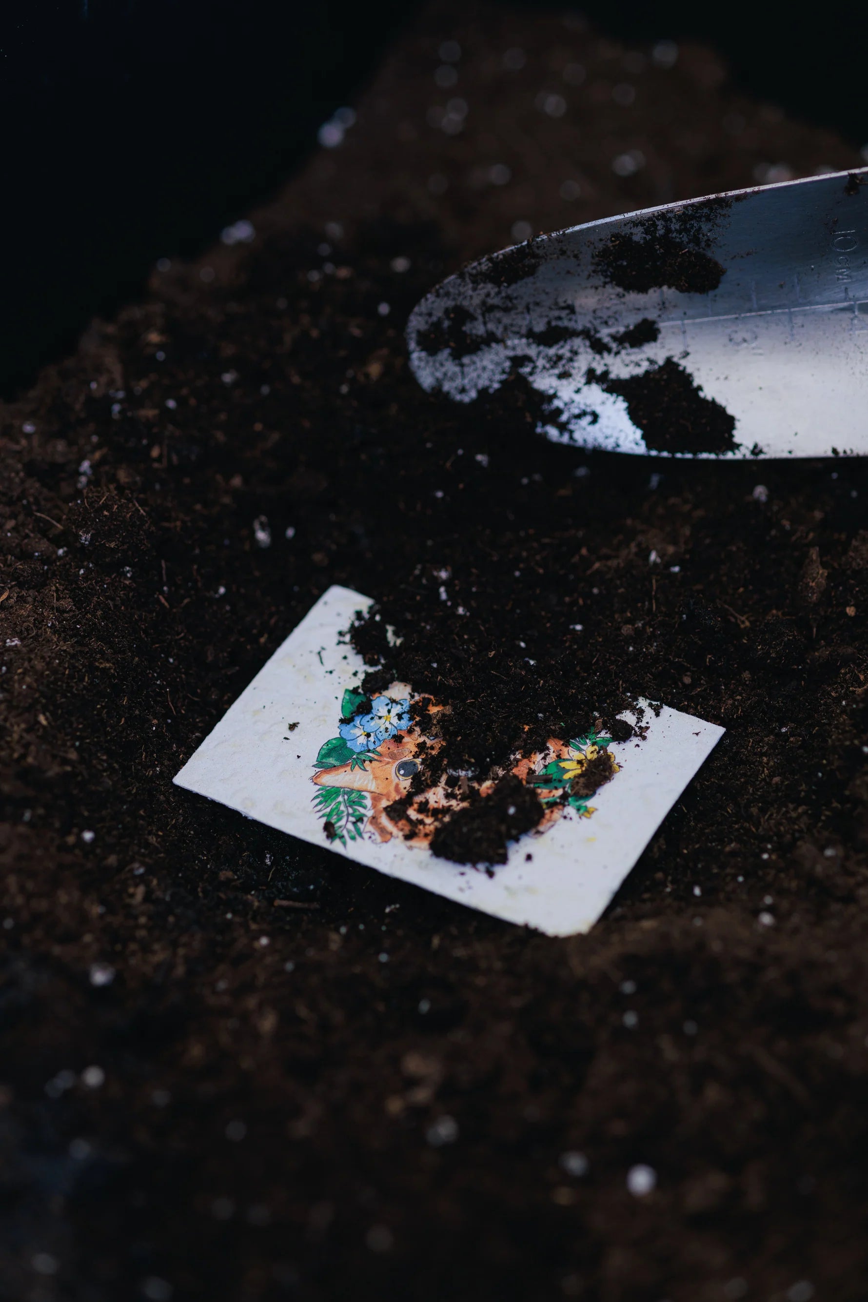 - Plant seeded paper under 2 mm of soil.
