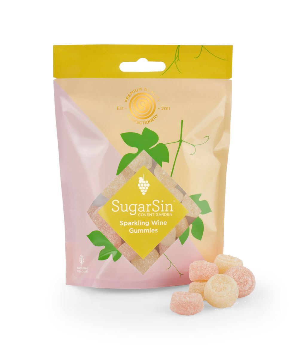Infused with sparkling white wine, blended with a light touch of raspberry and pineapple, and sprinkled with sour sugar crystals. These alcohol-free gummies are great for snacking.