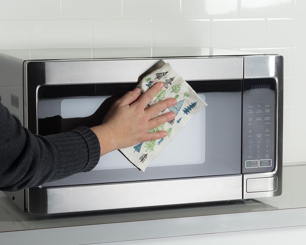 Clean up in style this holiday season with this set of striking tree-themed dishcloths. Exclusively designed by Abbott, these ultra-absorbent Swedish-made dishcloths feature a variety of boldly graphic Christmas trees in complementary shades of green and blue.