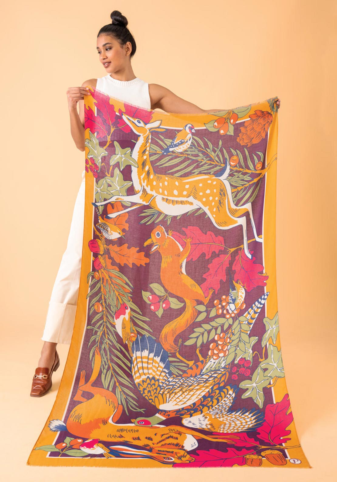 This winter woodland design intertwines rich jewel tones and charismatic woodland characters to create a striking picture. From acorns and ferns to delicate does and foraging squirrels, this print has everything darling autumnal lover would desire. Comes with a bespoke complimentary gift bag so will be even more special when shared with a friend or to treat yourself!