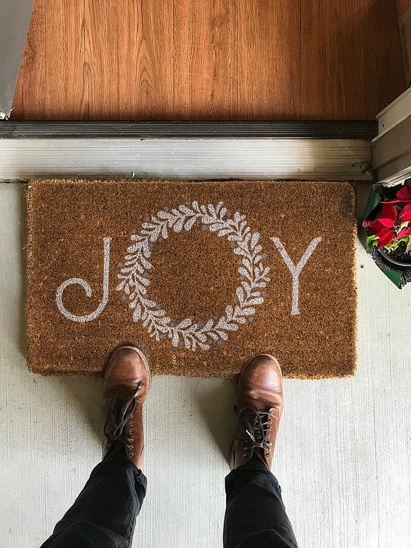 Let the holiday spirit shine when anyone sets foot at your door with this inviting Wreath JOY Doormat. Crafted out of durable coir fibre to withstand the worst of winter weather, this natural-coloured doormat features JOY written in cursive text, with a simple wreath in place of the "O" for an elegantly simple way to welcome guests to your home.